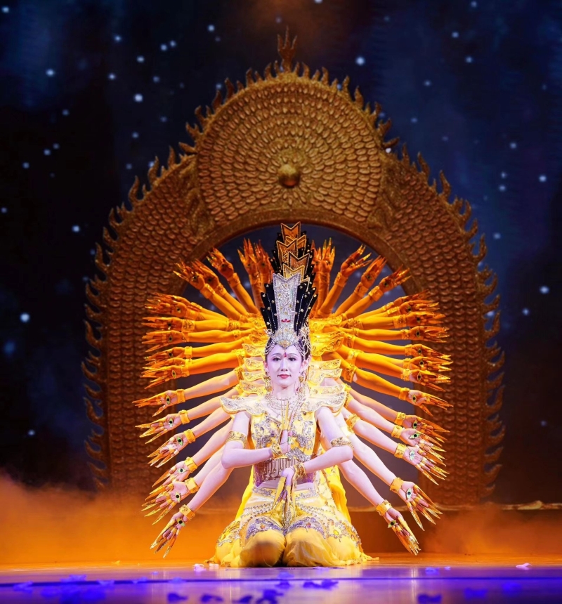 千手觀音舞是中國文化的名片。(珠海社團總會供圖) 當然,最後的壓軸舞蹈就是極富盛名的千手觀音,這已經是世界聞名的中國文化名片,舞台造型富麗堂皇,舞者的表演獨特靈動,她們的手起伏張合,似蓮花舞動,如生命綻放,令人淚盈於睫。