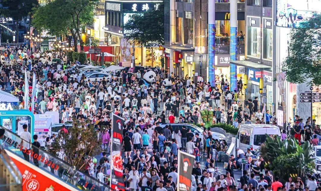 商區人流旺。深圳特區報記者 賴犁 攝 2023年以來,深圳社會經濟恢複性增長,人口規模優勢和城市吸引力進一步增強。據統計公報,深圳2023年末常住人口占廣東省常住人口總量的14%;深圳市年末常住人口增長率高於中國和廣東省平均水平。在四大一線城市中,深圳也居於首位。
