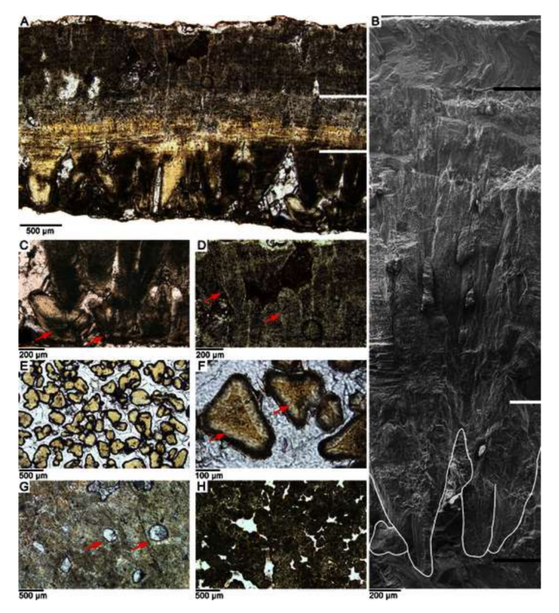 山東萊陽出土的恐龍蛋新蛋種化石。(圖源:新華社) 在中國地質大學(北京)、中國科學院古脊椎動物與古人類研究所和安徽大學的研究人員的合作研究下,確認新發現的這窩恐龍蛋化石是一個全新的蛋種。 研究人員從“變形蛋”的徑切麵觀察,發現其內部發育大量的錐形蛋殼單元組合,它們之間有較大的間隙;中間發育柱狀蛋殼單元和小孔;最外層發育殼單元的分支,形成灌木狀微結構。研究人員推測,“變形蛋”可能是鴨嘴龍的蛋,其年齡為晚白堊紀中期。