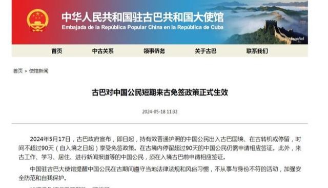 香港新聞網5月5日電 當地時間5月4日晚,在2024年古巴旅遊節的閉幕式上,古巴旅遊部長胡安·卡洛斯·加西亞宣布持有普通護照的中國公民無需簽證即可入境古巴。
