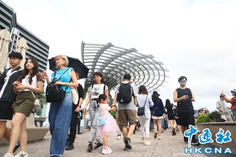 5月5日是中國內地五一黃金周假期最後一天,香港尖沙咀海濱依舊人山人海。(香港中通社記者 許其皓攝) 香港中通社圖片 入境處數據顯示,截至昨晚9時,昨日有超過八萬名內地旅客入境香港。之前公佈的數據指,五一假期首四日的訪港內地旅客累計錄得67.59萬人次。去年五一黃金周首四日(4月29日至5月2日),訪港內地旅客有56.09萬人次,今年多出11.5萬人次,上昇兩成。 另外,海外旅客亦錄得昇幅,首四日海外旅客有11.21萬人次,比去年同期8.07萬人次多近四成,約3.1萬人次。整體訪港旅客假期首四日累計有78.8萬人次,去年同期有64.17萬人次,今年多14.6萬人次高兩成三。 楊潤雄昨日在電台節目表示,今年黃金周雖有數天下雨,整個廣東省也受到不穩定天氣影響,可能影響部分內地旅客延遲訪港,但整體訪客情況並不差。根據特區政府入境處數字,本月首4天便有67.59萬人次內地旅客經各口岸入境。 特區政府早前預計五一黃金周有680個內地入境團訪港,楊潤雄指首天有560團登記,假設每團50人,即約有3萬名內地旅客,符合政府預期。 香港旅遊促進會總幹事崔定邦認為,天雨影響之下,訪港內地旅客人數跟估算相若,已算非常不錯。內地旅客絕大部分評價正面,不一定是所有人也花費很多,重點是旅客玩得開心,年輕旅客獲得良好體驗後,將來收入增加後,下次再來時花費更多。 來自上海的餘先生一家三口,此行來港兩日一夜,預計花費近二萬元,他大讚香港市面繁榮,電子支付交易方便,不負“購物天堂”美譽,既適合太太購買名牌手袋、護膚品等,也有兒子喜歡去的玩耍的沙灘,行程滿滿。 “坐在這(維港)都好舒服。”來自廣西的孫小姐一家人,昨午在星光大道拍照留念,她大讚遊港體驗良好,特意預留一天到油尖旺區“打卡”拍照、購物、吃美食等,預計留港三天兩夜。 來自廣州的梁先生是首次訪港,感覺香港很熱鬧,形容“港味濃”。他說過去在網上看到維港景色,這次親來感受到它的壯觀,“一看過去沒有盡頭,對面又有高樓大廈,拍照很好看。”梁先生喜歡看香港的電視劇,對劇中的取景地點特別感興趣,例如油麻地警署、彩虹邨、街市等,希望實地逛逛,用相機拍攝留下人情味,在社交媒體分享。廣州旅客黃小姐也說,近年兩地交通往來方便,訪港次數增加,期望去一些小眾景點“打卡”。(完) 【編輯:紀東】