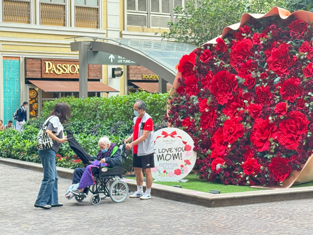 香港新聞網5月11日電 (方咏思)母親節將近,香港各區的節日氣氛濃厚,商場、食肆、銀行等都特設母親節優惠活動刺激消費。 為慶祝母親節,由花藝設計品牌 Aurora Blooms打造逾6米長3.5米高的千支巨型玫瑰登陸灣仔利東街,鮮艷的紅色玫瑰吸引了行人的視線,遊客和市民紛紛停下腳步排隊“打卡”。附近花店店主陳小姐表示,去年母親節店鋪在中環,生意額升幅比預期小,今年門店搬到灣仔利東街,希望在巨型玫瑰花束的加持下,提高花束的銷量。