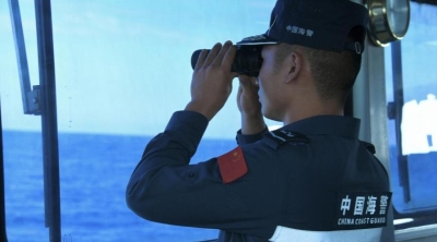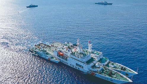 2024年5月16日,菲律賓多艘船隻在黃岩島鄰近海域非法聚集,中國海警進行現場監視取證。央視新聞圖
