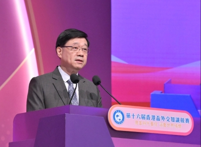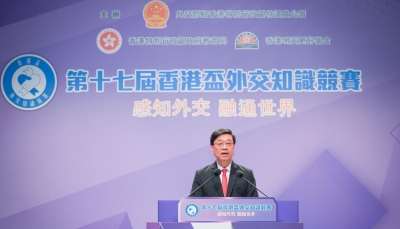香港中通社5月18日電 第十六屆香港盃外交知識競賽決賽暨頒獎典禮18日舉行,特區行政長官李家超出席并致辭表示, 香港正經歷經濟轉型期,每一位青年都要深刻認識世界和國家發展大勢。 李家超指出,外交事務屬於中央事權,但不代表外交事務與香港沒有關係。反之,作為中國人,我們更應該多加留意國家在國際事務上的新動態、新發展,多加了解國家全面推進中國特色大國外交的新征程、新篇章,從而思考香港該如何更好融入國家發展大局,同時提升香港國際競爭力。 李家超表示,世界正面臨百年未有之大變局,香港也同樣在經歷經濟轉型期。每一位青年都要深刻認識世界和國家發展大勢,錘煉過硬本領,才可以在變局中用新思維、新辦法、新路徑解決面臨的問題,不斷激發創新創造活力,開創新局面。