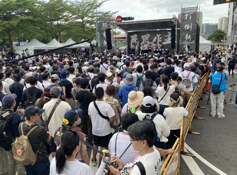 人潮約2點半左右,就從民進黨部前的舞台一路蔓延到林森北路。 (台灣聯合新聞網圖) 據台灣聯合新聞網報道,民眾黨在中央黨部前舉辦“519草根決心行動”,支持者人手一顆芭樂,批評民進黨過去8年的承諾都是芭樂票,一同高喊“人民作主”,活動從下午2點至下午4點,舉辦方稍早在立委黃國昌、館長陳之漢上台前、約3點50分時,喊現場破8000人、線上破8萬人。 台灣2024年大選當選人賴清德將於20日就職。早前民眾黨規劃19日在台北市民進黨中央黨部前的北平東路封街集會,號召上千人參與。柯文哲5月9日表示,民進黨繼續執政,要提醒賴清德,面對通脹、高房價、能源、安全等問題,應當有超越政黨的智慧和高度,台灣才能夠真正落實民主與自由。 據報道,有記者在現場實際觀察,人潮約在2點半左右,就從民進黨部前的一路蔓延到林森北路,也是警方最底端的管制區,不過由於北平東路並非全線管制,尚保留一車道,活動場地比預期的更加狹長。 根據瞭解,活動場地面積約2200平方公尺,全部人潮站滿約是6500人,熟悉中正區的警官表示,根據計算,現場面積不要算那麼滿,把面積乘以0.7,再乘以3(每平方公尺站3人),接著加上零零總總的人數,差不多有5000人。 (完) 【編輯:錢林霞】