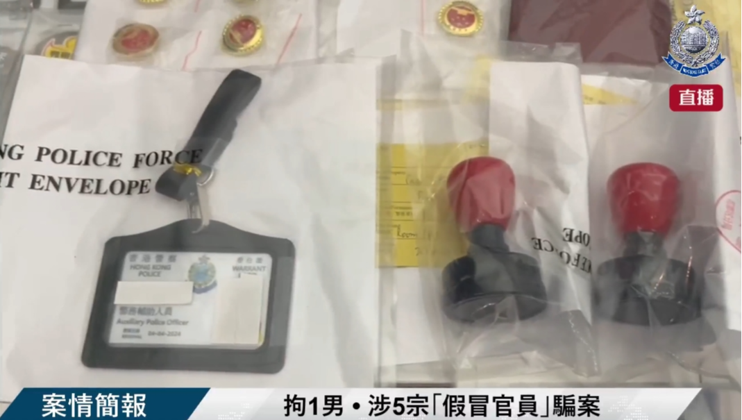 (圖源:警方FB) 警方經調查後拘捕一名25歲男子,相信他是詐騙集團的骨幹成員,並在其住所檢獲案發時所穿的服裝和一張偽造的警察委任證,以及公安徽章、公安和金管局蓋印、打印機等。 被捕男子報稱無業,主要負責與事主接洽會面,一人分飾多角,包括穿上印有公安徽章的領帶和西裝假扮特務警察,亦向受害人出示偽造的香港警察委任證。 警方表示,今年首3個月錄得474宗電話騙案,其中168宗為假冒官員騙案,損失金額達7.6億港元,較去年同期上升逾3倍。提醒市民騙案手法都是舊瓶裝新酒,以恐嚇方式,要求事主不得向他人透露詳情,呼籲市民提防騙案。 早前,警務處處長蕭澤頤亦呼籲市民,若接到自稱內地官員的電話,應立即掛斷,“內地官員是不會直接打電話給大家……我保證那個是騙案,百分之101是騙案。”(完) 【編輯:刘春】