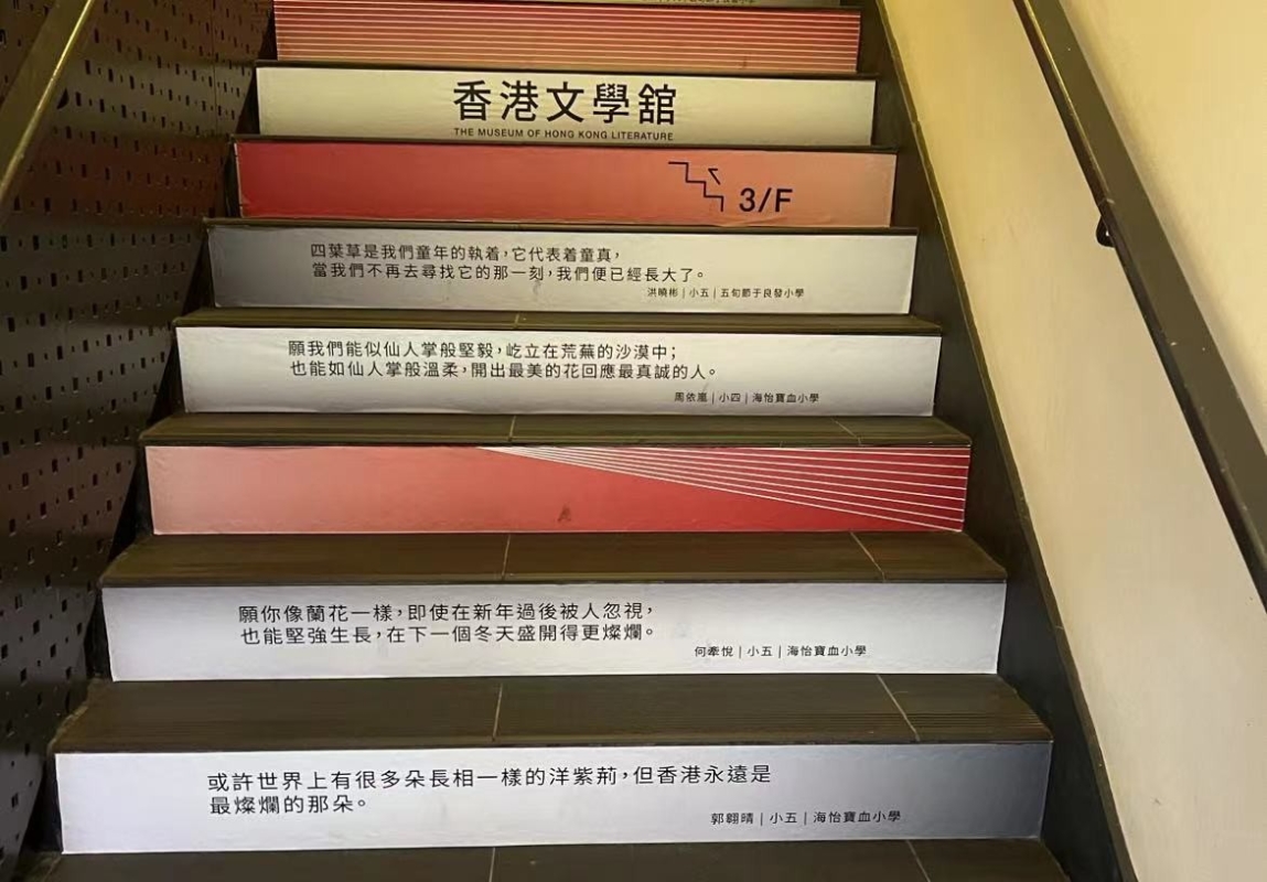在通往文學舘的樓梯上,每一階都印有小學生寫的詩句,正如其中一句:“或許世界上有很多朵長相一樣的洋紫荊,但香港永遠是最燦爛的那朵。”香港文學舘將成為推廣香港文學、撒播文學種子的地方。(完) |