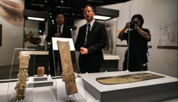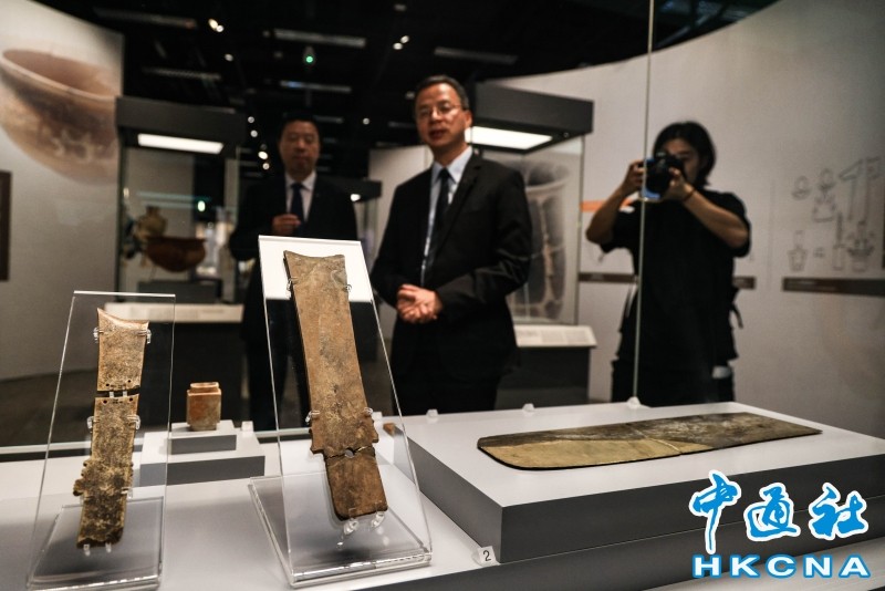 香港中通社圖片 灯光微弱中,展示櫃內陶器的清雅,玉石器的潤滑,原始樂器的華貴,都在默默講述著古老故事。展覽首日有不少市民前來,感受著文物傳遞的遠古信息。 香港和山東並不陌生,香港有兩個一級歷史建築——孔聖講堂、魯班先師廟,均與山東有關。展覽現場,“牙璋”更是深刻反映了香港與山東的聯結的文物。現場展出的1990年南丫島大灣遺址出土的牙璋,是香港出土唯一一件,以此與山東出土牙璋作對比,說明香港早在青銅器時代已受商文化影響。 據山東省文物局局長王磊表示,山東文化遺產豐富,有3.35萬處不可移動文物,558萬餘件可移動文物。此次特展精心挑選約200件精美文物,第一次在香港展出,也是為香港的朋友打開了一扇瞭解齊魯文化獨特魅力的視窗。 山東博物館館長劉延常特別提及展品亞醜鉞,該文物被選為山東博物館“十大鎮館之寶”之一,是目前全國發現的四十多件商代銅鉞中最精美的一件。因其器面銘正反“亞醜”二字,故得名“亞醜鉞”。器身透雕的人面獸相紋,威猛莊嚴,極其生動傳神。 “亞醜鉞出土自山東青州蘇埠屯一號大墓,是面目猙獰的人面與獸面的結合,起到震懾敵人的作用。但現在觀眾卻覺得亞醜鉞很可愛,為此研發的文創產品銷量很可觀。”劉延常說。 開放公眾參觀首日,在香港讀書的趙小姐特地前來觀看“亞醜鉞”。她說:“能在香港見到齊魯文化下出土的文物,感到很興奮,特別喜歡現場蓋章集畫的文創環節。”桌面放置著各式印章,觀賞人可DIY,得到“亞醜鉞”自畫像。 九龍市民林先生正細細觀察蛋殼黑陶鏤空高柄杯:“難以相信這是四千年前的技藝,細膩的紋路和象征意義,都是古代先民的智慧。”元朗官立小學四年級生曾同學對紅陶袋足鬹產生興趣,他說:“這個總讓我想到豬籠草。”