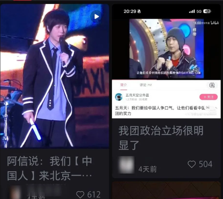 明星的貼文,本就很正常,遇到重大日子大家都會在微博等公共平台表達普遍心聲,沒有什麼大驚小怪的。 不過,在台灣島內“抹紅”、製造“綠色恐怖”的炒作下,就成為另一個版本的故事了。 接下來幾天,社交網絡越發成為“逼人表態”的游戲,而一些藝人的言行,更被放大到極緻。 無獨有偶,蔡依林24日起一連兩晚在南昌舉辦演唱會,面對滿場歌迷,她開心笑喊:“謝謝你們,你們實在太熱情了,我們中國南昌最熱情了對吧?”其工作室隨後也在微博發文,寫著:“我們中國,南昌最熱情了對吧!” 同一天,台灣樂團五月天在北京舉行演唱會,主唱阿信在台上與歌迷互動時提到,“我們中國人嘛,來北京一定吃烤鴨的。”曾是信樂團主唱的台灣歌手信(蘇見信),24日深夜也表態支持和平統一,“從以前到現在,我一直都是支持統一的,要再多說幾次也是應該的。”