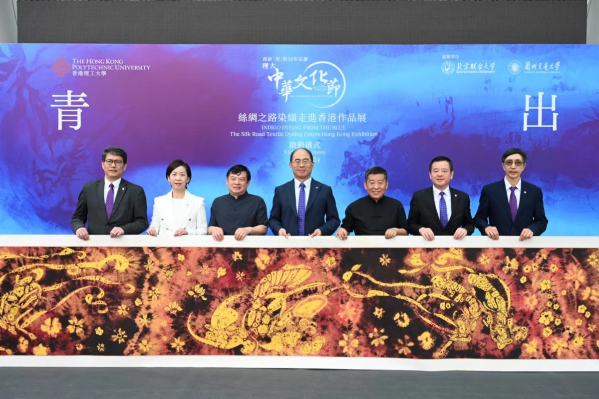 香港新聞網5月30日電 (呂紀星)“青出於藍—絲綢之路染纈走進香港作品展”5月30日在香港理工大學舉辦活動啟動儀式,由理大主辦,北京聯合大學和蘭州交通大學協辦,以中國傳統絲綢印花技術為主題,重現古代紡織和染色技藝的卓越成就,展示絲綢之路染纈非遺技藝。 理大自今年三月啟動“理大中華文化節”以來,已舉辦了不同藝術形式和主題的活動,藉以提升理大社群及社會各界對中華文化的欣賞,承接先前活動的成功,理大現呈現染纈作品展。