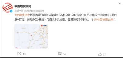 香港新聞網6月1日電 中國地震台網正式測定:06月01日08時46分在西藏那曲市尼瑪縣(北緯34.14度,東經86.36度)發生5.9級地震,震源深度8千米。