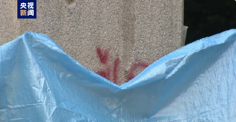 日本靖國神社石柱被紅漆塗寫英文“廁所”一詞