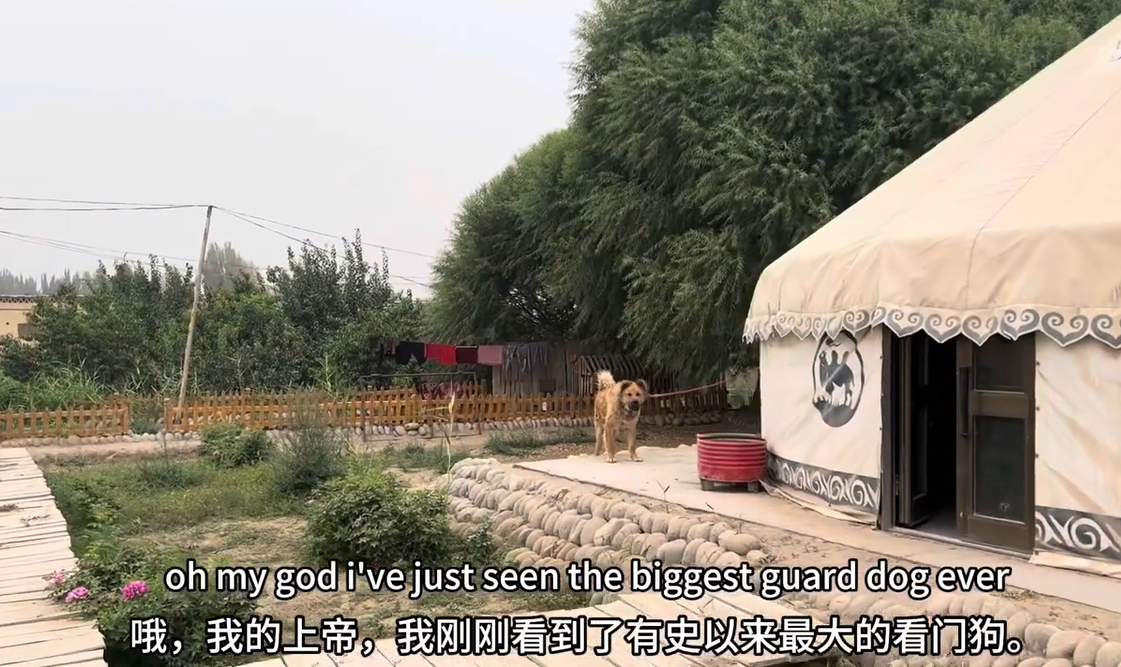 英國YouTube博主livinlavidaluke的視頻截圖 6月1日,livinlavidaluke發佈了一條視頻,展示他在中國新疆一個小村莊的所見所聞。據他介紹,這是一個只有幾百個維吾爾族人居住的小村莊,離沙漠很近,是“新疆一個很偏僻的地方”。 livinlavidaluke注意到,這裡的房子和中國大多數地方的房子很不一樣,而且幾乎每戶人家門前都有自己的小農場,養有雞、鵝,還有非常大的看門狗。無處不顯示這裡的安逸。