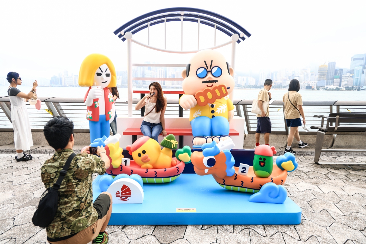 香港新聞網6月8日電(記者許其皓)香港旅遊發展局端午節慶活動,6月8日率先在尖東開鑼。尖沙咀星光大道全新“嚐味當夏美食街”揭幕,帶來多款夏日冰爽滋味餐飲,迎接端午佳節,同時呈獻“LINE FRIENDS Hong Kong Summer Chill ”7大全新打卡熱點及期間限定店,一站式滿足公眾食、買、玩三大願望。現場吸引不少公眾在“LINE FRIENDS Hong Kong Summer Chill ”打卡點拍照。