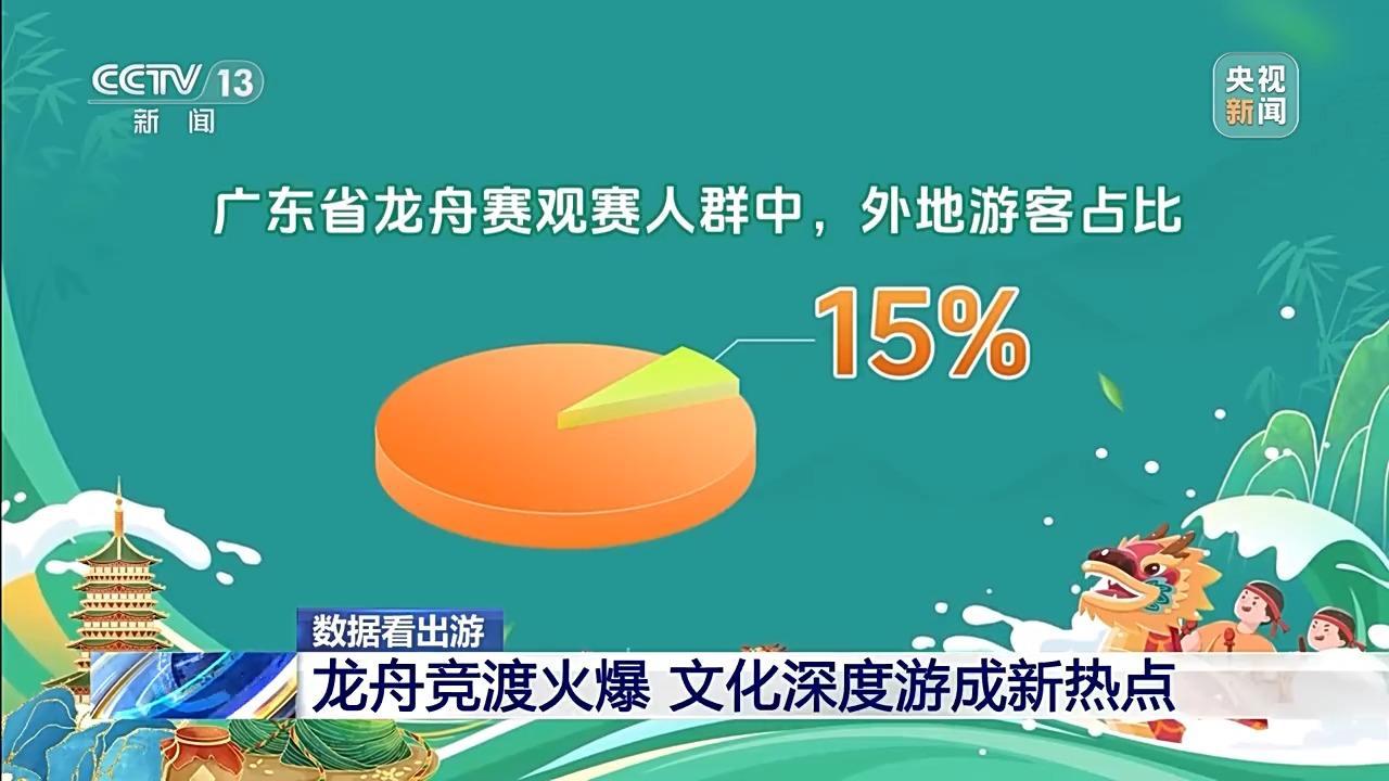 央視新聞報道,中國移動梧桐大數據通過各地龍舟賽相關熱詞搜索情況和話題活躍度以及游客數量,綜合計算出了各地龍舟賽熱度指數。通過全國龍舟賽熱力圖可以看出,最火的省份集中在廣東、湖南、貴州、福建和江西。各地龍舟賽也吸引了眾多外地游客,在龍舟賽最火的廣東,外地游客占觀賽人群總數的15%。“龍舟經濟”帶動各地文旅消費潛能不斷釋放。