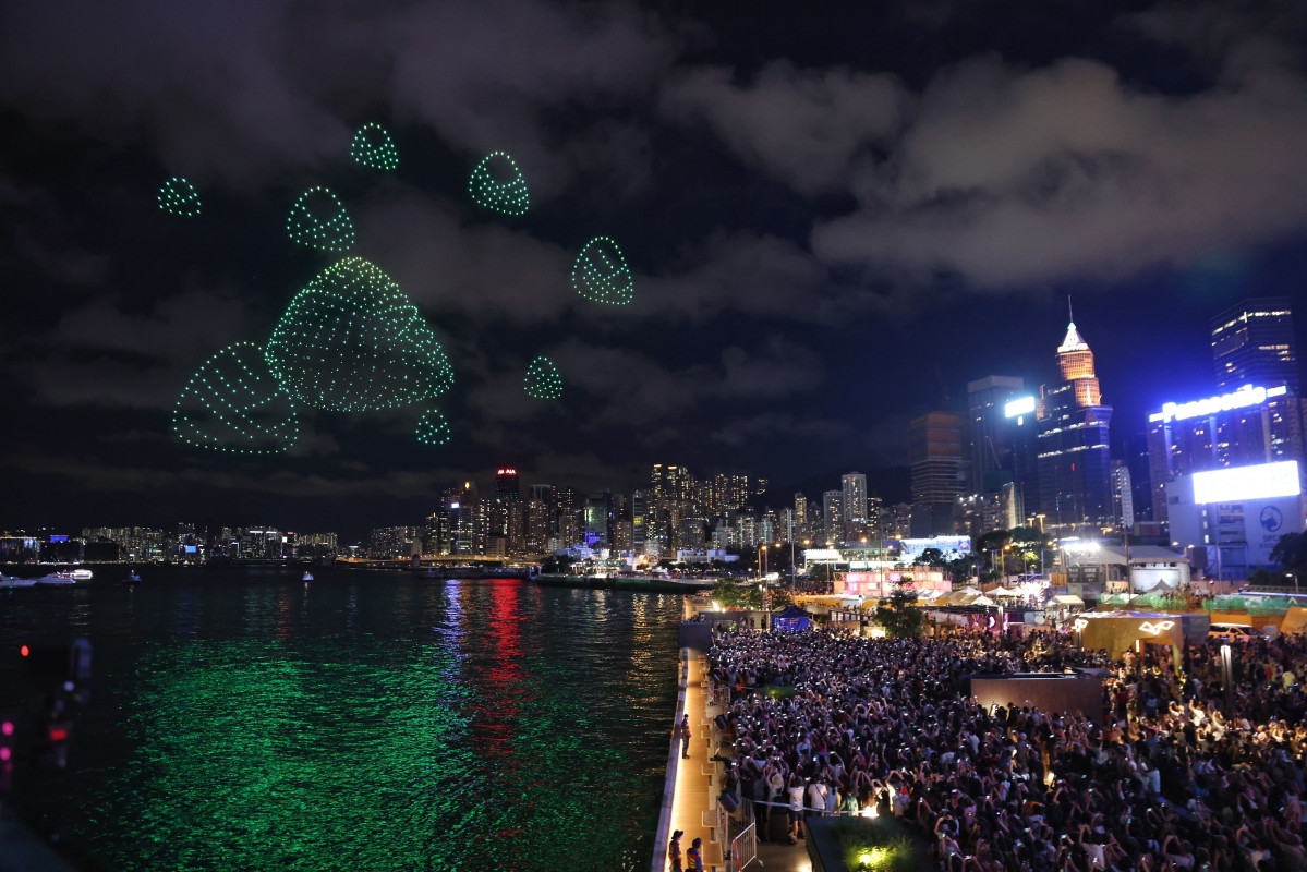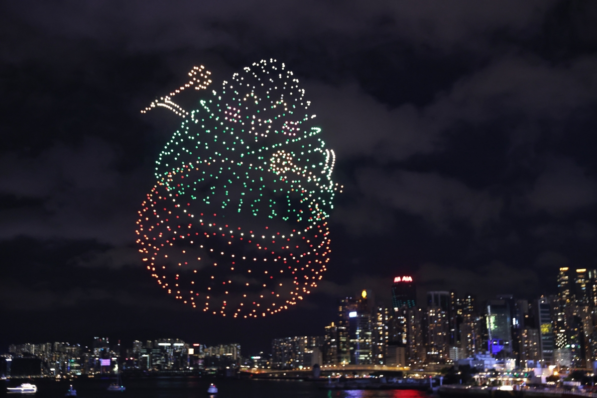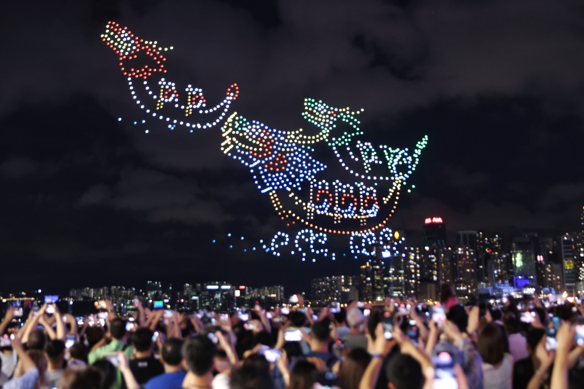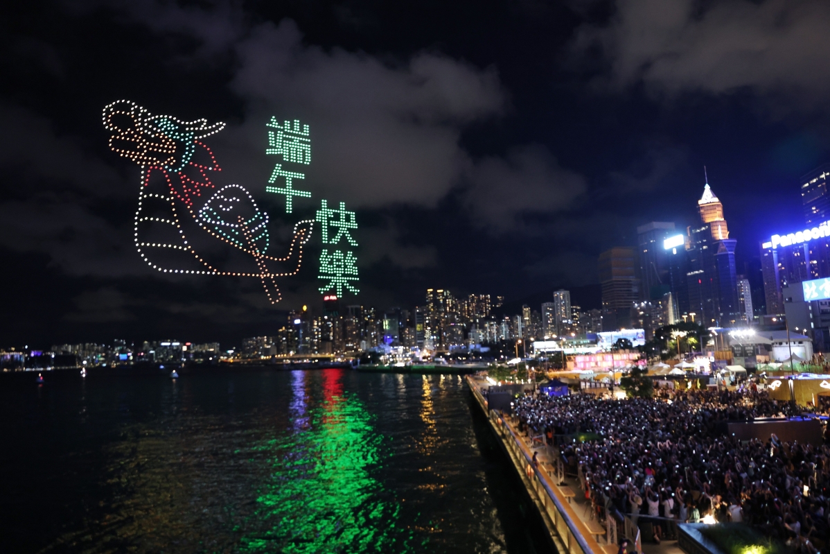 香港新聞網6月10日電(記者 謝光磊 ) 6月10日是端午節,晚上8點,維港夜空上演端午節主題的無人機表演。1000架無人機於灣仔海濱對出的維多利亞港上空,展演多幅動態圖案,包括可愛卡通糉子、龍舟競渡、飛龍在天等不同節慶畫面,吸引大批市民及遊客觀賞,為全城增添節日氣氛,豐富旅客體驗。