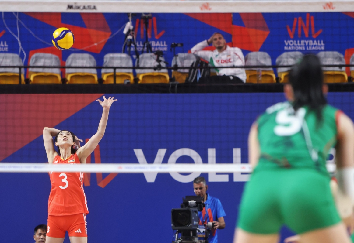中國隊(紅衣)迎戰保加利亞隊,以3:0大比分橫掃對手