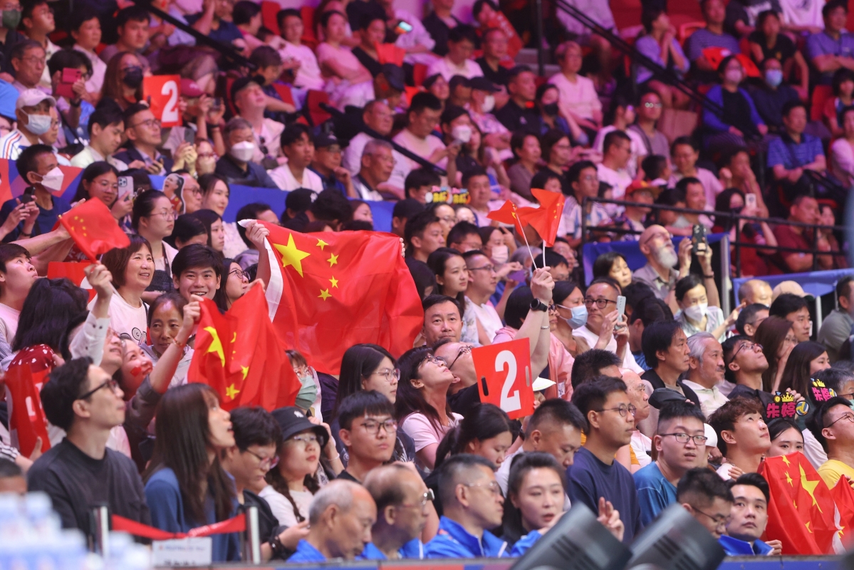 紅館觀眾席上市民為中國隊加油打氣