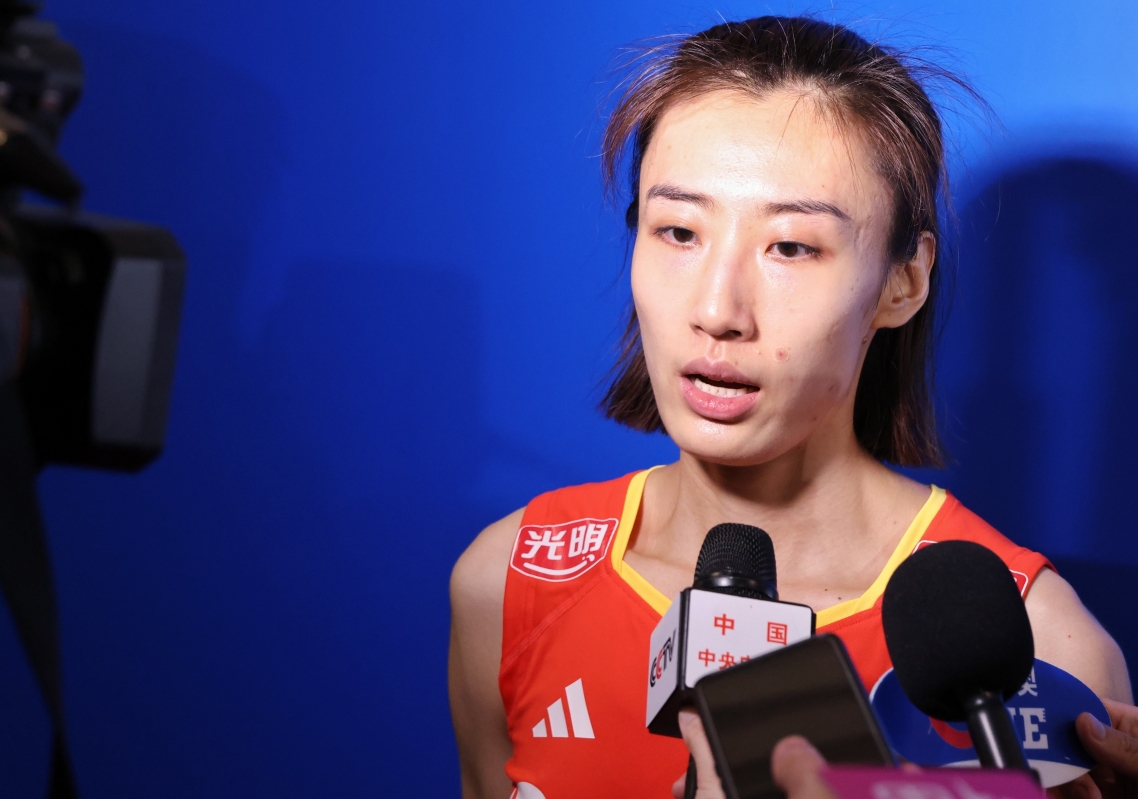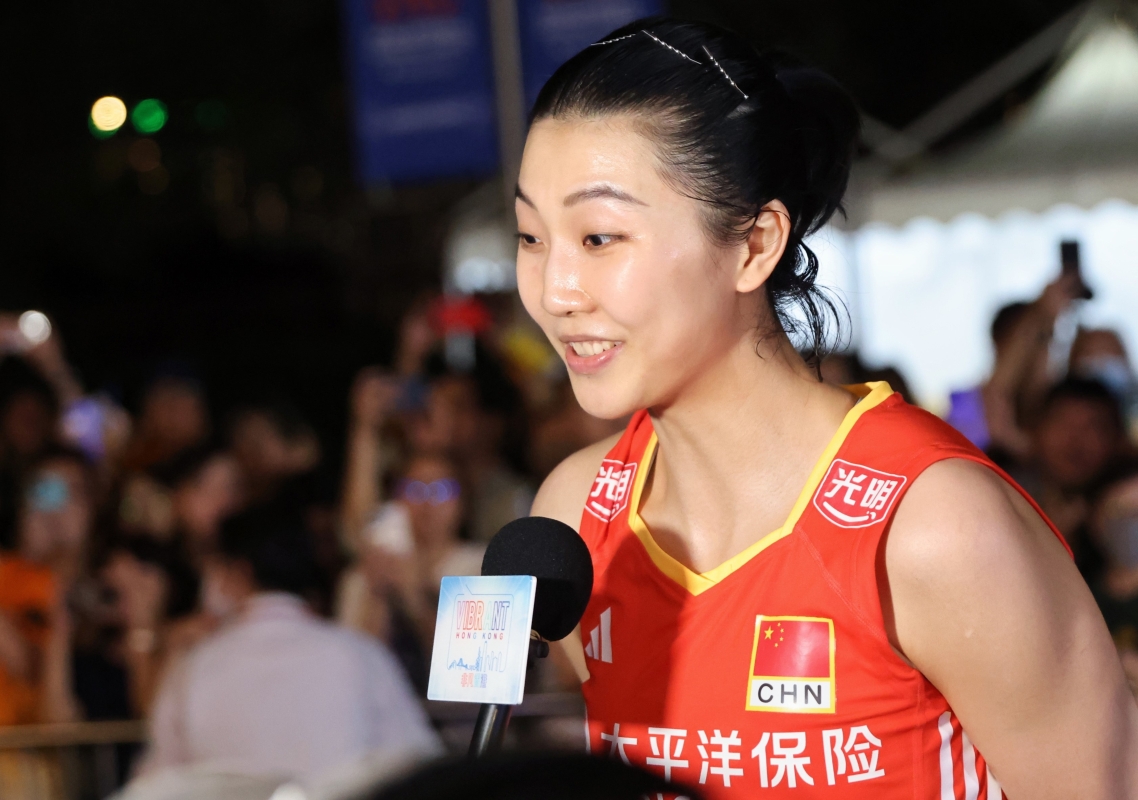 中國女排隊長袁心玥賽後接受媒體訪問 【編輯:洪少葵】
