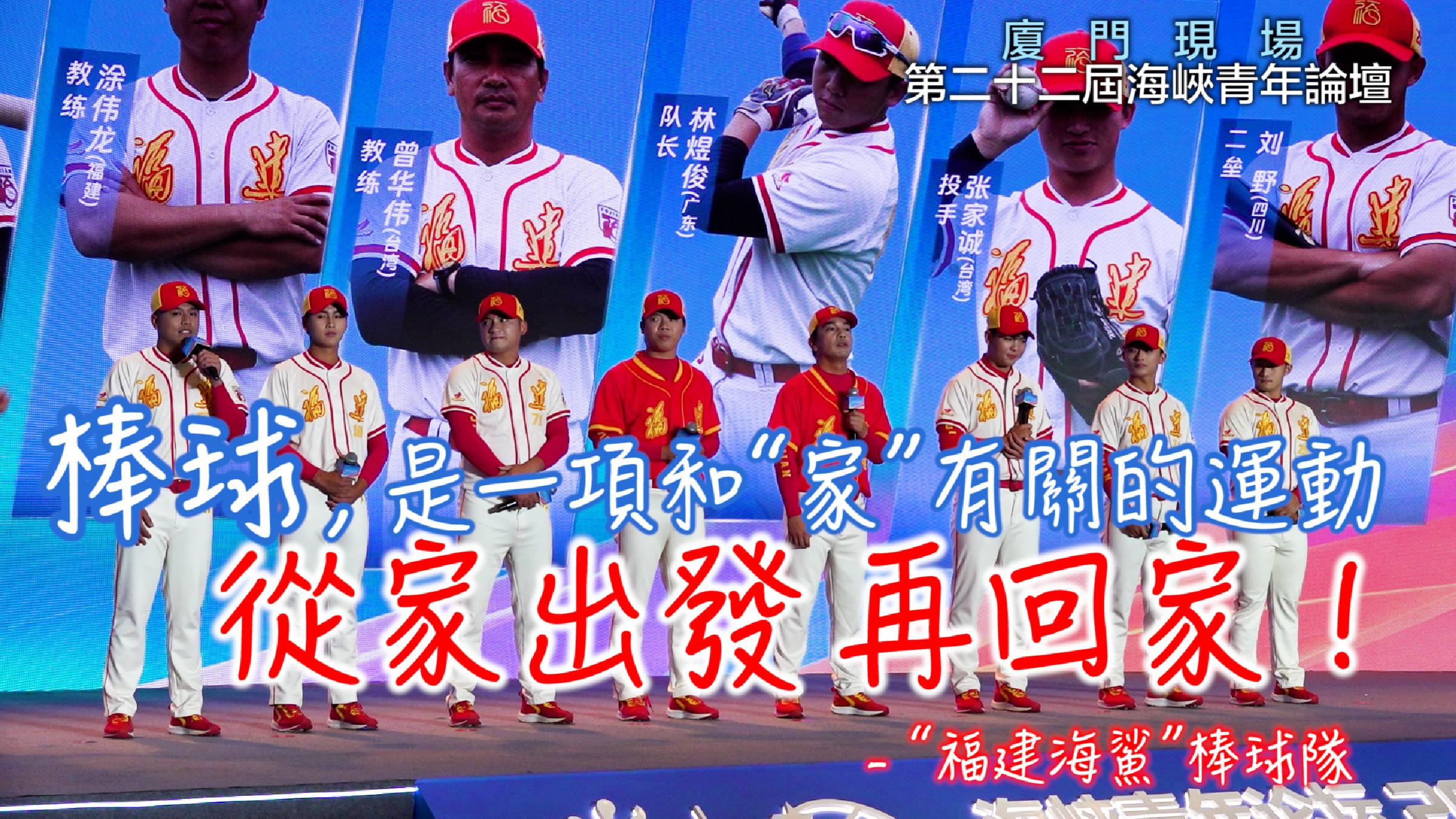 在棒球,本疊的英文叫home base,這是一項和家有關的運動,因為你在棒球比賽中只有從本疊出發,再回到本疊才能得分,所以棒球是一項從家出發再回到家的運動,我們會是冠軍,也是比賽的冠軍,更是兩岸融合的總冠軍。