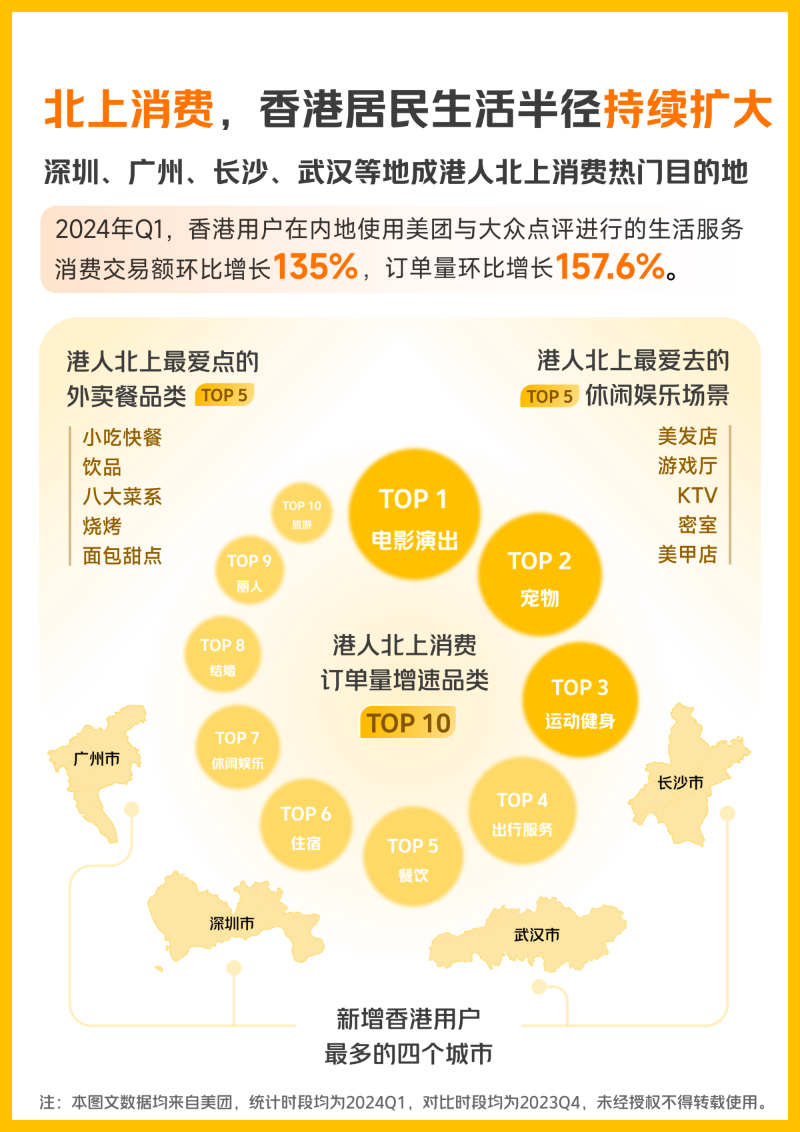 內地餐飲攻港水土不服?真實情況是這樣的……香港新聞網6月20日電 從繁華的香港島到人頭攢動的羅湖、落馬洲、深圳灣等各大口岸,港人北上的身影隨處可見。今年4月底,美團發布《港人北上消費數據簡報》,數據顯示,2024年第一季度,香港居民在內地城市生活服務類消費環比2023年第四季度,交易額增長135%,訂單量增長157.6%。