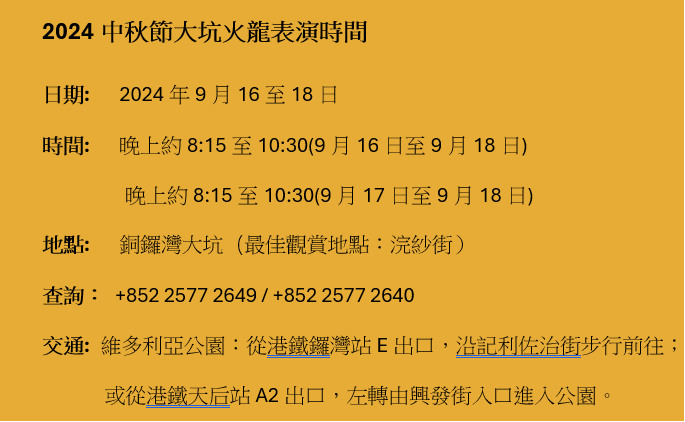中秋節大坑舞火龍免費入場(附交通路線圖)分享到: