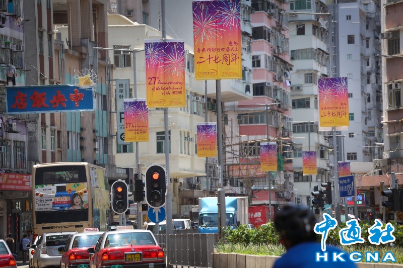 慶回歸標語為香港深水埗街頭添一抹暖色分享到: