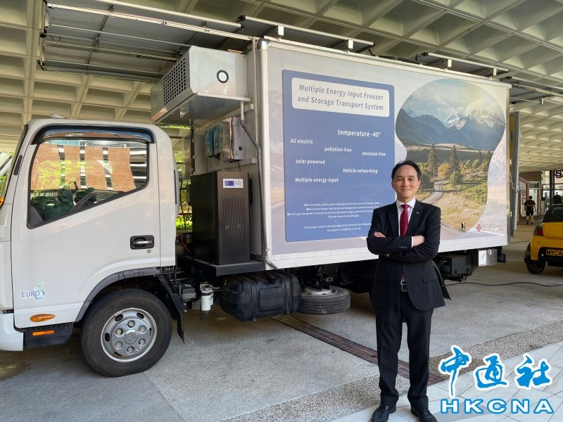 香港中通社6月27日電(記者 陳偉根)香港理工大學電機及電子工程學系教授鄭家偉帶领的研究團队,近期成功研發出一輛新型智能太陽能冷藏車。團隊27日介紹,冷藏車已進入商用階段,價格不超過70萬港元,可在4個月內交付給客戶。 目前,全港約有五千輛冷藏車,未來預計會增至一萬輛。傳統冷藏車的冷藏系統,主要靠內燃機引擎提供動力,若以每輛車每小時需要消耗一至三公升柴油,便產生2.7至8.1公斤二氧化碳,每年排放量就高達约16噸,需要種植760棵樹木才能抵消有關碳排放。此外,冷藏系統一般只能維持在攝氏零下20多度左右。 鄭家偉帶领的研究團队,去年6月獲得香港特區政府創新科技署創新及科技基金的資助,成功研發出一輛新型冷藏車,既支援太陽能供電冷藏系統,又具備車聯電能儲存及交換技術。