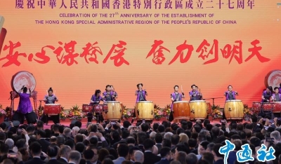 (回歸27年)荃灣無人機表演 空中砌出“香港夢、中國心”分享到: