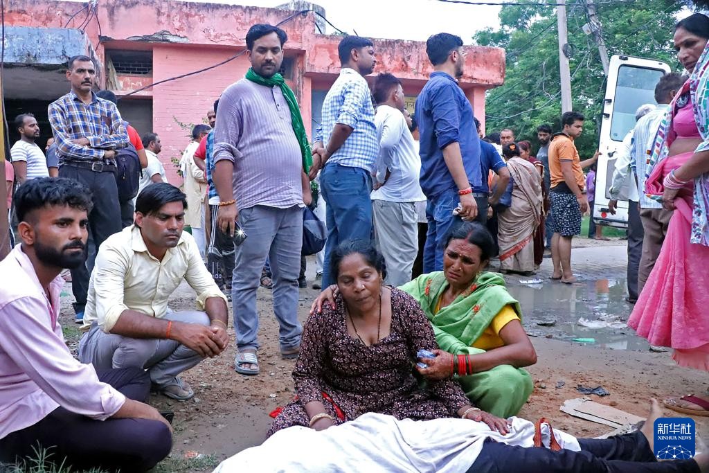 7月2日,在印度北方邦哈特勒斯地區,遇難者親屬在遇難者遺體旁哭泣。印度北部北方邦一集會現場2日發生嚴重踩踏事故。新華社圖片 據悉,這場宗教集會活動於2日中午開始,持續了一個小時。當召集活動的宗教人物離場時,人群開始衝向他,尋求他的祝福。為了防止人群靠近,他的私人保安和集會人群發生推搡,部分人員摔倒。隨後人群失控並陷入恐慌,踩踏情況愈演愈烈。 當地官員確認,事故目前已造成超100人死亡。 目擊者說,事發路段的兩側是排水溝,在擁擠踩踏中不斷有人跌入深溝,導致很多人被後面倒下的人壓在身下,最終釀成慘劇。 據印度媒體報道,遇難者中多數是婦女和兒童。超過150人被送往醫院搶救,由於一些人傷勢嚴重,死亡人數可能上升。 調查顯示,集會人數遠遠超出政府允許的場地容量是踩踏發生的主要原因之一。當地警官表示,此次活動獲准接納的人數只有5000左右。但據多名目擊者說,現場實際有約5萬人聚集,僅有約40名警察負責維持秩序。 另據印度報業托拉斯和新德里電視台等多家印度媒體報道,現場目擊者稱實際集會人數超過了20萬。(完) 【編輯:馬華】