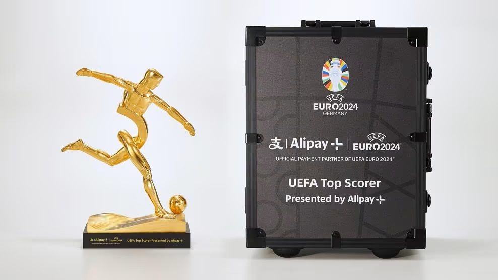 2024歐洲杯公佈的13個最高級別的贊助商中,中國品牌佔了五席。(圖源:歐足聯官網) 歐洲杯備受矚目的得分王獎杯,也充滿“中國元素”。 6月11日,歐足聯官方發佈了2024歐洲杯“支付寶得分王獎杯”。獎杯由螞蟻集團旗下全球化品牌Alipay+冠名,獎杯的上半部分,由一個踢球者的形象組成了漢字的“支”,設計靈感來自中國2000多年前的小篆體,底座則由24片海浪組成,每一片海浪上分別篆刻着24支參賽隊的名字。 這座融合融合中國傳統文化與全球化理念的獎杯將在賽事結束後,頒發給今年歐洲杯決賽階段進球最多的球員。