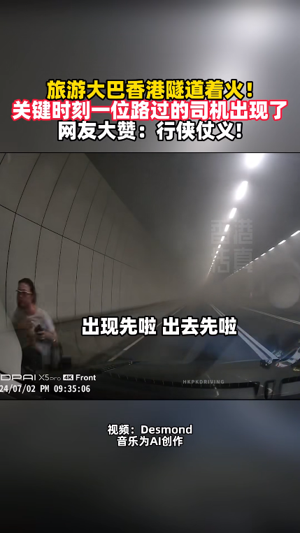 大巴隧道著火!路過香港司機果斷停車載人分享到: