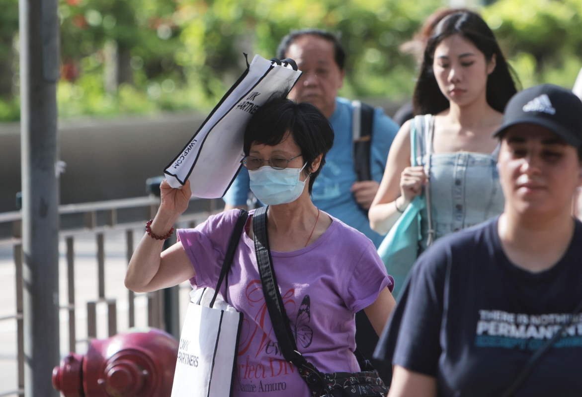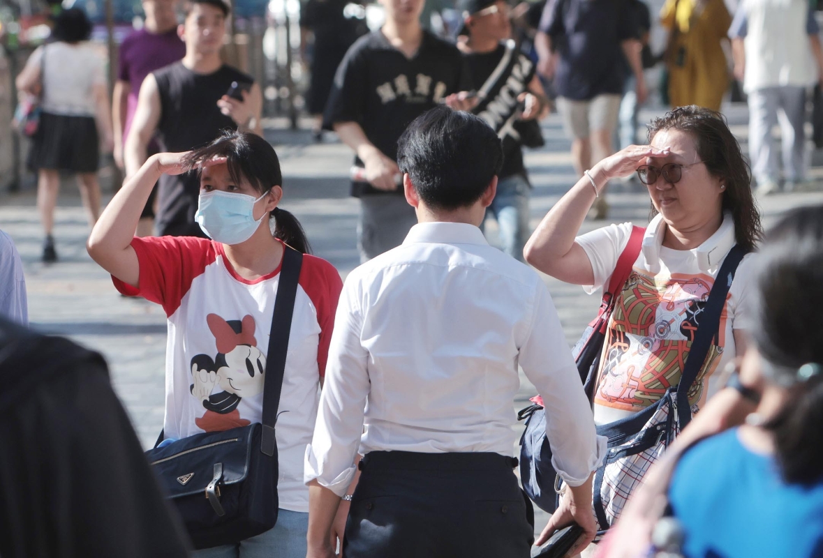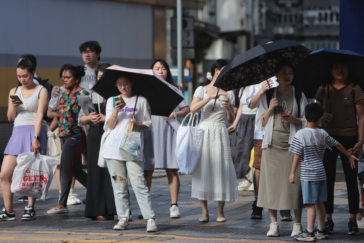 香港新聞網7月5日電(記者謝光磊)7月5日,香港天文台發出特別天氣提示,提醒天氣極端酷熱,高溫天氣持續。當日下午天文台錄得最高34.6度,再破今年最熱紀錄。當日,香港市民在酷熱天氣下出行。