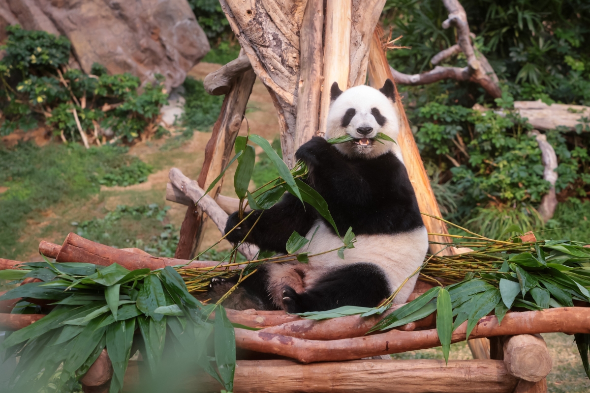 7月1日,香港舉行慶祝回歸27周年酒會,特區行政長官李家超出席酒會致辭時宣佈,中央將再向特區贈送一對大熊貓,將於幾個月後到港。圖為現時居住在香港海洋公園的大熊貓。(香港中通社記者 謝光磊 攝)
