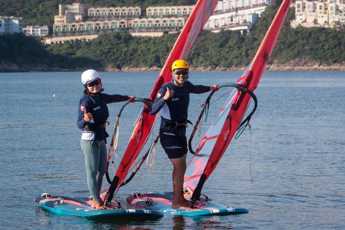 巴黎奧運會即將舉行,中國香港連續九屆取得男女子滑浪風帆入場券。7月4日,選手鄭清然(右)、馬君正(左)會見傳媒介紹備戰情況,他們將分別出戰男子iQFOiL項目和女子iQFOiL項目。 (香港中通社記者 謝光磊 攝)