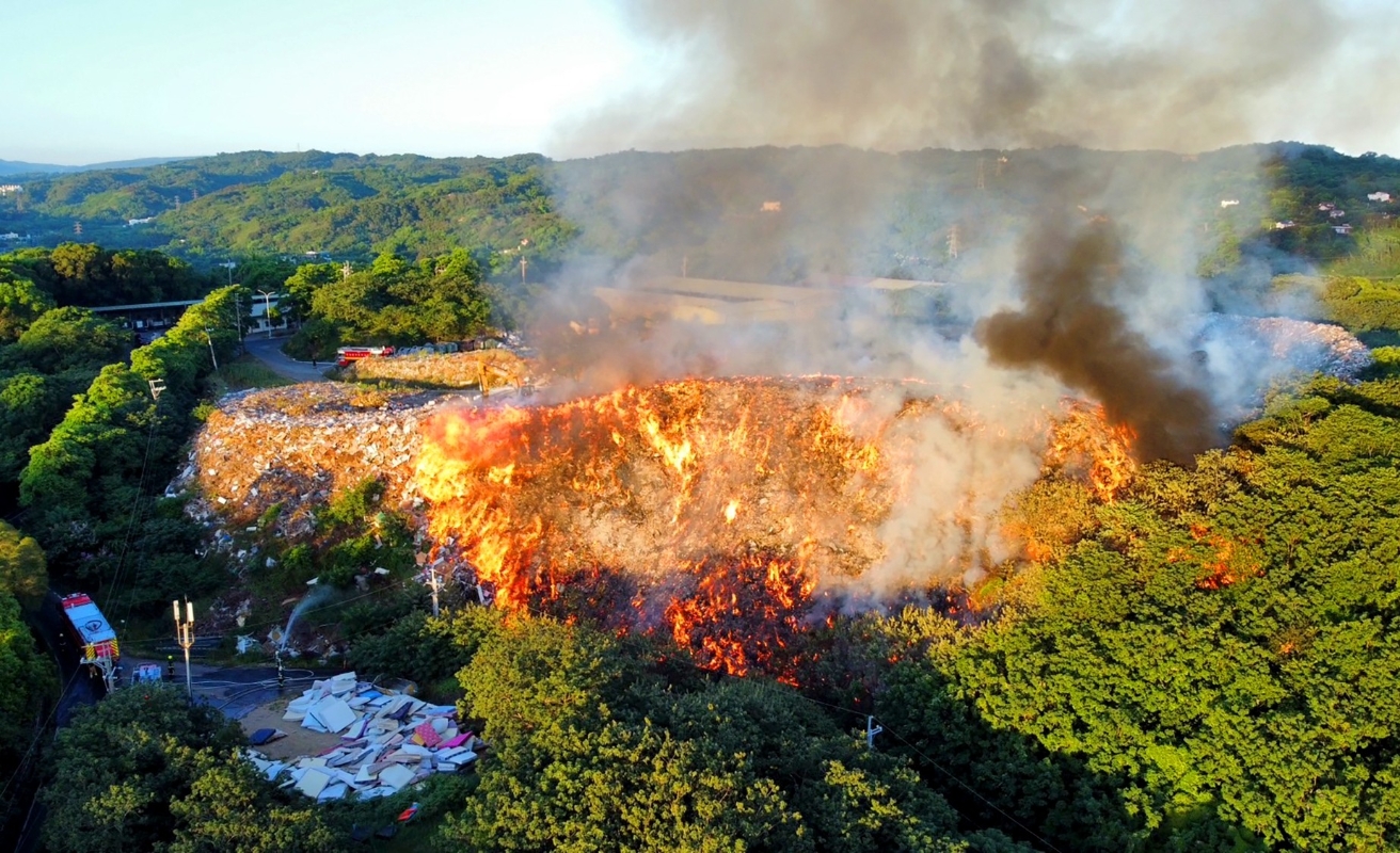 台灣苗栗市西山舊垃圾掩埋場的廢傢具暫置區,7月7日凌晨4時許突然發生大火,火勢迅速蔓延,濃煙衝向天際,火災目前已延燒約1公頃。去年11月20日,該處舊垃圾場的廢傢具暫置區也曾發生大火,當時的火災延燒了數天才被完全撲滅。此次火災發生疑似是連日來天氣炎熱,導致另一區堆積的廢傢具內部產生沼氣,進而引發火災。(香港中通社圖片)
