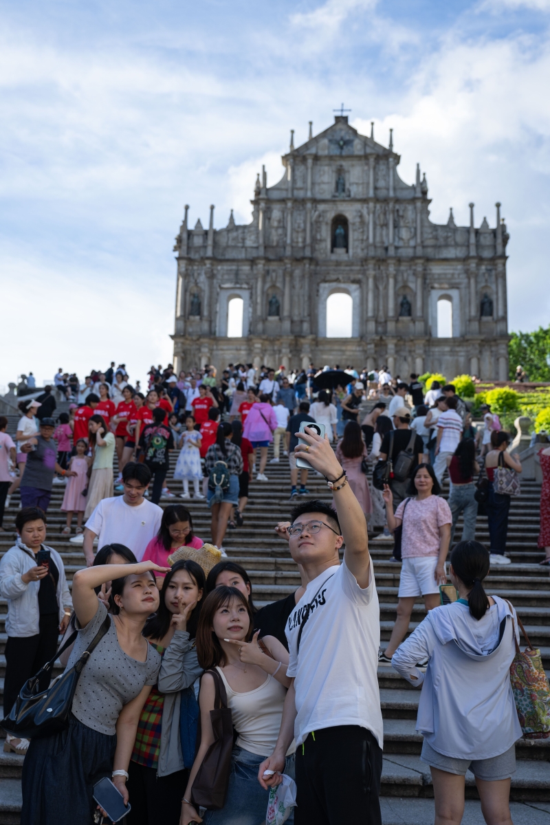 7月7日,澳門黃色高溫提示生效,根據氣象局資料,午間多區最高溫錄得超過三十三攝氏度。儘管驕陽似火,但旅客遊澳熱情高漲,澳門中區一帶人潮絡繹。(香港中通社圖片) 編輯:徐文峰 監製:洪少葵 【編輯:洪少葵】