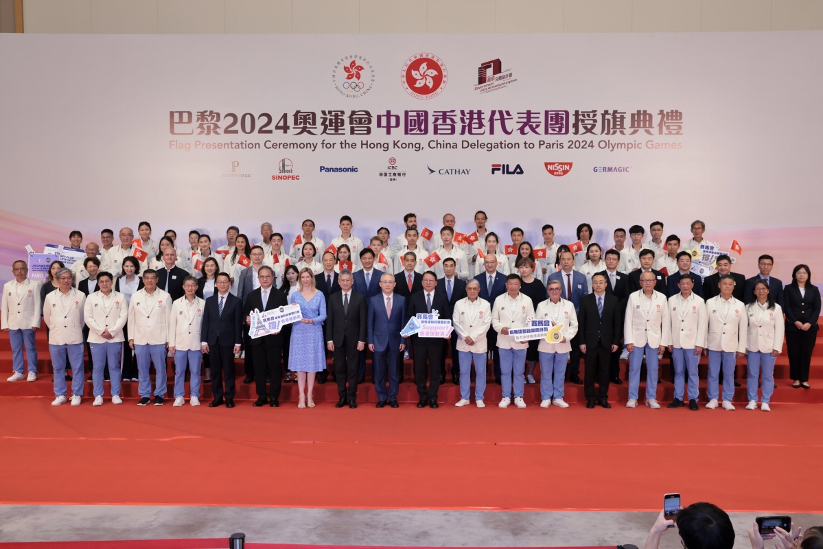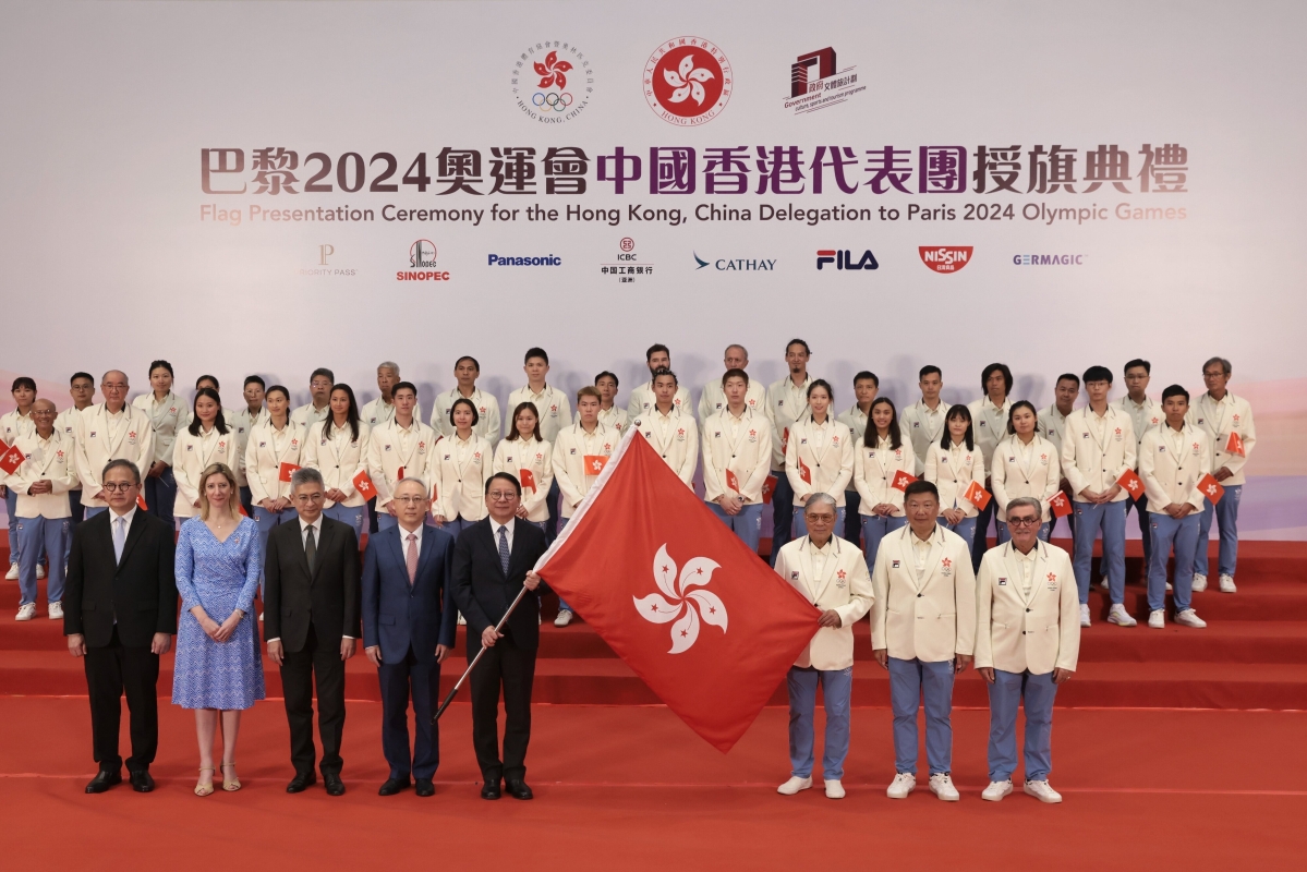 巴黎2024奧運會中國香港代表團授旗典禮在政府總部舉行 【編輯:洪少葵】