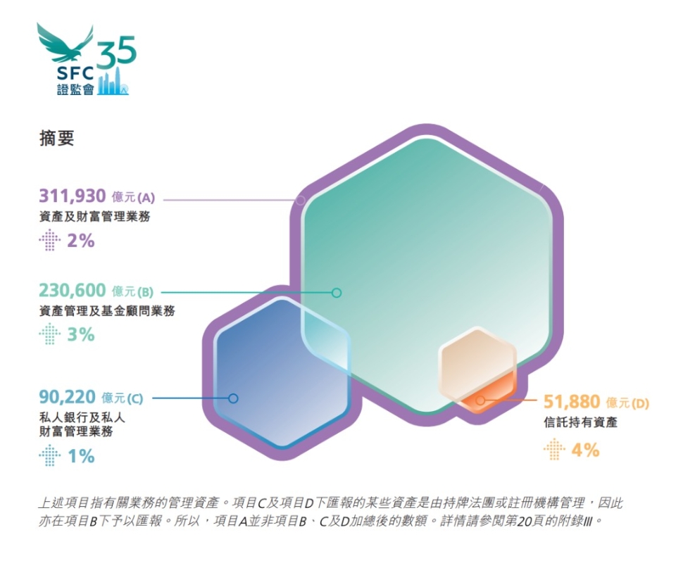 香港證監會:香港保持國際資產管理領先優勢香港新聞網7月16日電 香港證券及期貨事務監察委員會(香港證監會)日前發佈《2023年資產及財富管理活動調查》,數據顯示,2023年,香港管理的資產規模超31萬億港元,同比增長2%,淨資金流入急增342%。香港證監會表示,多項主要指標反映香港資產及財富管理業務的投資者資金來源高度多元化、資產配置全球化,體現香港作為國際資產管理中心的領先優勢。 去年香港整體管理資產淨資金流入增342% 調查結果顯示,於過去五年,非中國內地及香港投資者的資產一直占管理資產總值的54-56%,而於香港管理的資產當中,配置到海外市場的比例達到60%。過去三年,香港第9類(即提供資產管理)的持牌機構數目穩步上昇了12%至2024年6月的2161家。 值得注意的是,香港整體管理資產總值於2023年按年增長2%,至311930億港元;而淨資金流入則大增342%至3890億港元,主要來自私人銀行及私人財富管理業務的巨大貢獻。 此外,在香港註册成立的證監會認可基金亦表現強勁,其淨資金流入於2024年首季繼續向好,錄得330億港元(約42億美元),延續去年大幅反彈93%至870億港元(約111億美元)的勢頭。這些基金的管理資產總值於2023年增長了5%,并於今年首季進一步上昇3%。