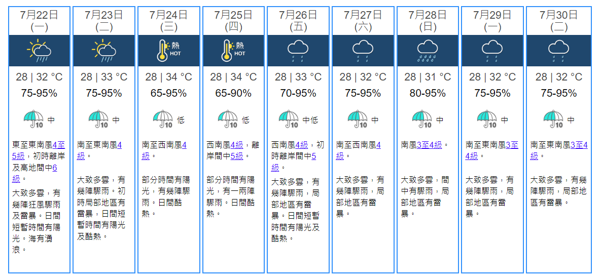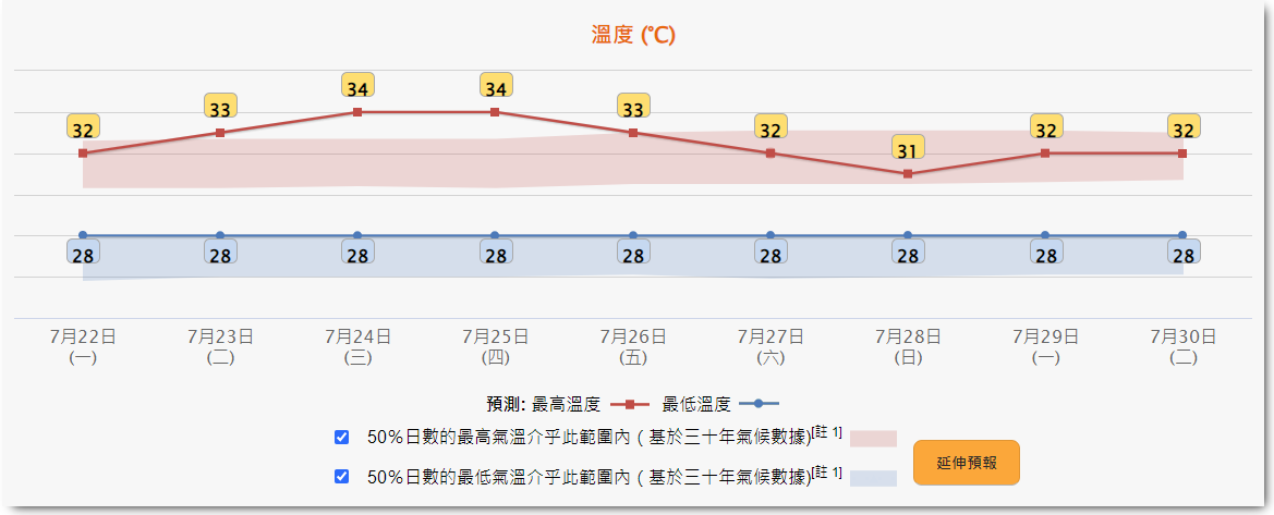 未來9天天氣預報。香港天文台截圖