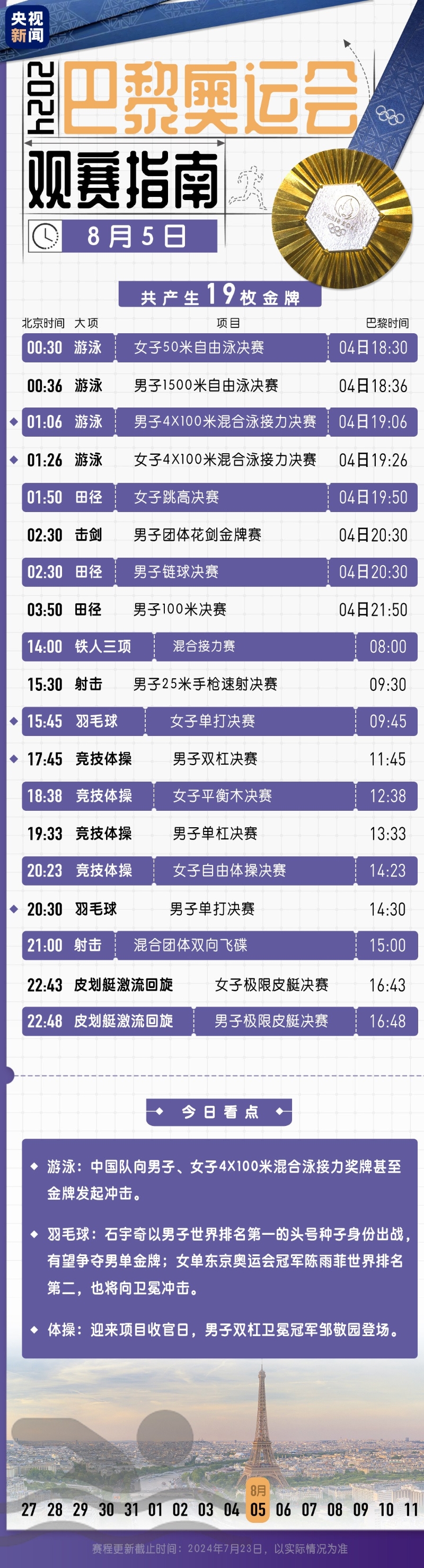 巴黎奧運會觀賽日曆:最新看點都在這里分享到: