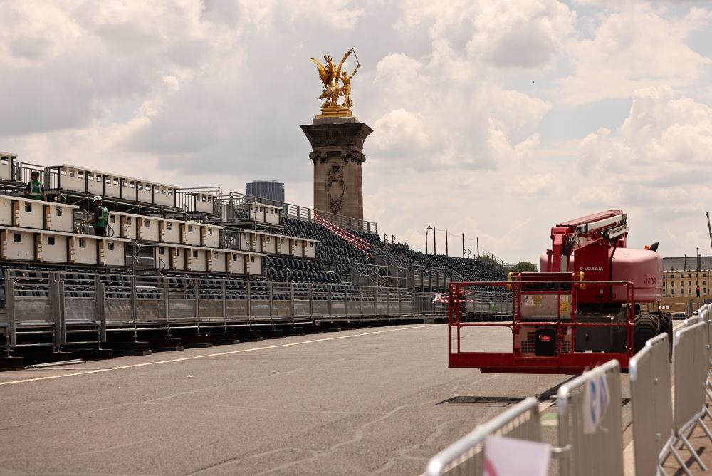 亞歷山大三世橋(新華社) 亞歷山大三世橋橋長107米,寬40 米,橋兩端各有兩座高17米的橋塔,塔頂有象徵著科學、藝術、工業與商業的4組金色駿馬雕塑。它們即使在陰雨的天氣裡也都金光閃閃,富麗堂皇。 這座橋由俄國沙皇尼古拉二世捐贈給法國,並以尼古拉二世的父親亞歷山大三世名字命名。 2024年巴黎奧運會的馬拉松游泳、鐵人三項比賽與公路自行車計時賽終點設置於此。 5. “法國皇冠上的寶石”埃菲爾鐵塔 即將舉行的奧運開幕式上,各國運動員最終將到達埃菲爾鐵塔對岸的特羅卡德羅廣場,參加慶祝儀式。