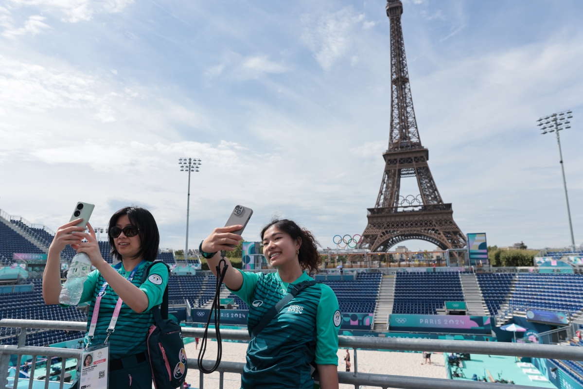 沙排運動員在埃菲爾鐵塔體育場訓練