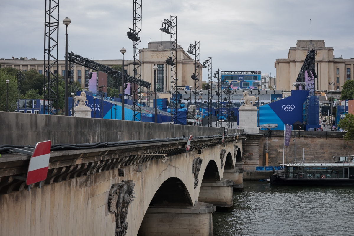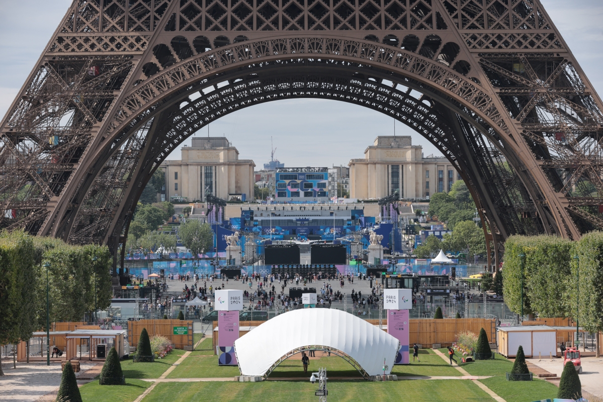 香港新聞網7月26日巴黎電 (記者 謝光磊)當地時間7月25日,巴黎埃菲爾鐵塔旁的奧運會開幕倒計時指示牌顯示,距離第三十三屆夏季奧運會開幕只剩1天時間。大部分場館建設已經基本完成,南巴黎競技場已經基本完工,場館外觀眾入場的圍擋都已經安裝完畢。但仍有一些場館正在緊張趕工,埃菲爾鐵塔體育場館內塵土飛揚。塞納河的水質通過大力治理,再加上近日天氣都很好,沒有下雨,水質大為改善。 7月25日當天,記者發現塞納河岸邊依然漂浮有大量水草,但河水還算清澈。水淺的地方能看到底部。天氣炎熱,埃菲爾鐵塔體育場內噴水霧降溫。特羅卡德羅廣場準備就緒,會場中央搭出一條埃菲爾鐵塔型T台。按照巴黎奧組委的方案,開幕式舉辦時,運動員將搭乘船隻,沿著塞納河由東向西航行約6公里至埃菲爾鐵塔對岸的特羅卡德羅廣場,參加慶祝儀式(包括藝術表演和主火炬點燃)。本屆奧運會將成為歷史上第一個將開幕式從傳統的體育場轉移到開放的城市空間舉行的奧運會。巴黎奧運會開幕,巴黎會迎來世界各地的遊客。