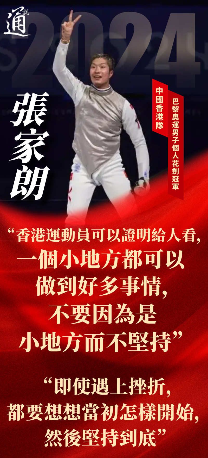 香港中通社7月30日電 當地時間7月29日,巴黎奧運會進入第三個比賽日。多名來自中國香港、日本和英國等國家和地區的選手在不同項目中成功衛冕;中國跳水隊則收復失地,將在東京奧運會上唯一丟失的金牌拿了回來。運動員們奮勇拼搏的畫面印在觀眾心中,而他們袒露的心聲也堪稱經典。 在29日進行的擊劍項目男子個人花劍決賽中,中國香港選手張家朗15:14戰勝意大利選手菲利波·馬基,奪得冠軍。這是港隊本屆奧運第二金,並創下首次在一屆奧運奪兩金的歷史最佳成績。 “香港運動員可以證明給人看,一個細小地方都可以做到好多事情,” 賽後,成功衛冕的張家朗勉勵香港市民,“不要因為是細小地方而不堅持。” 張家朗在首節以11:10領先,第二節與馬基鬥到12平手,之後馬基接連取分,領先14:12,只差一分就勝出。張家朗其後主動搶攻,連取三分摘得桂冠。 實現逆轉勝的張家朗被指擁有大心臟,他透露自己的心態是打好每一場,即使輸也要打好每一劍。“教練也在提醒我,不要理會之前,打好下一劍。”