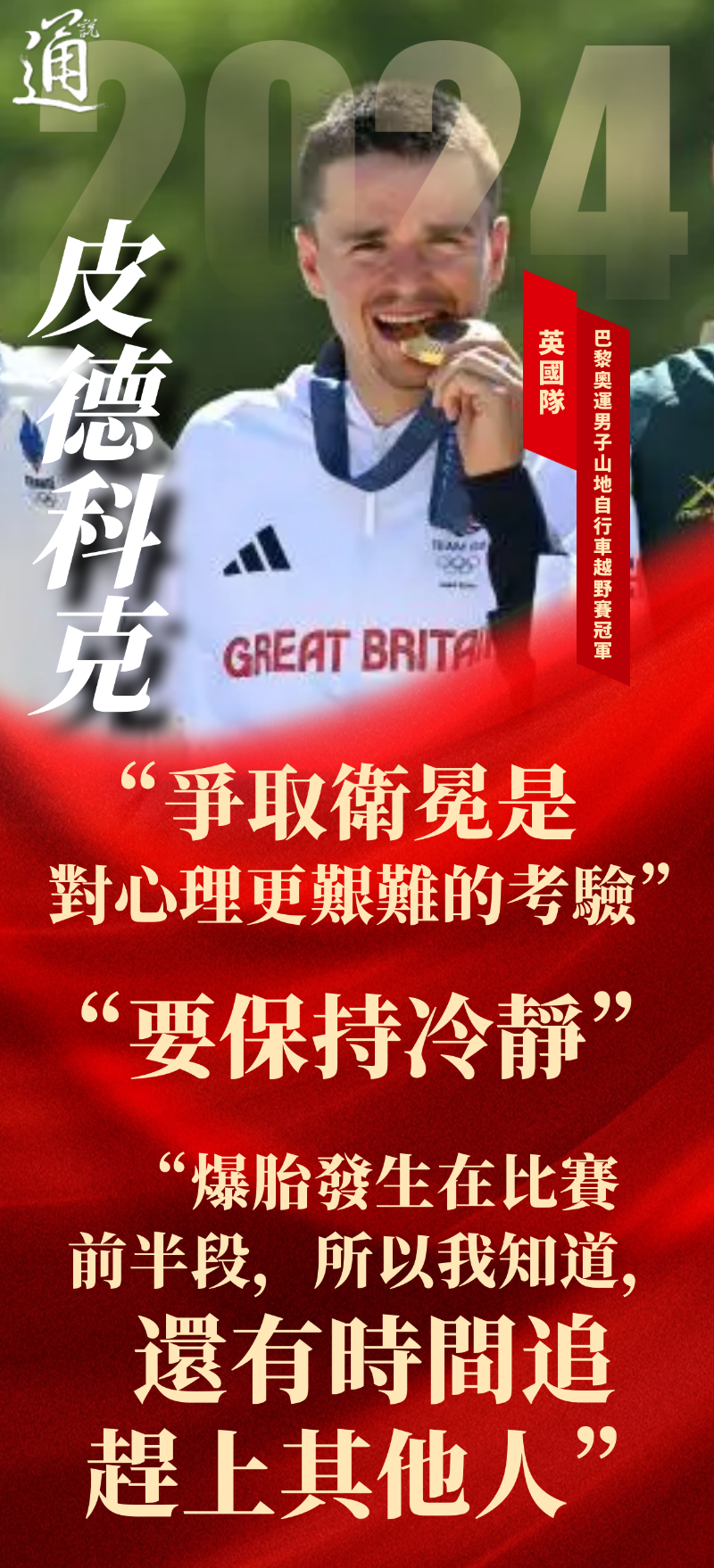 (香港新聞網製圖) 英國選手皮德科克的衛冕之路亦非一帆風順。在29日舉行的男子山地自行車越野賽上,皮德科克遭遇爆胎,但他最終仍以1小時26分22秒的成績奪冠。 “爆胎發生在比賽前半段,所以我知道還有時間追趕上其他人。” 皮德科克在賽後的新聞發布會上表示,爆胎發生後,自己首先就是保持冷靜。