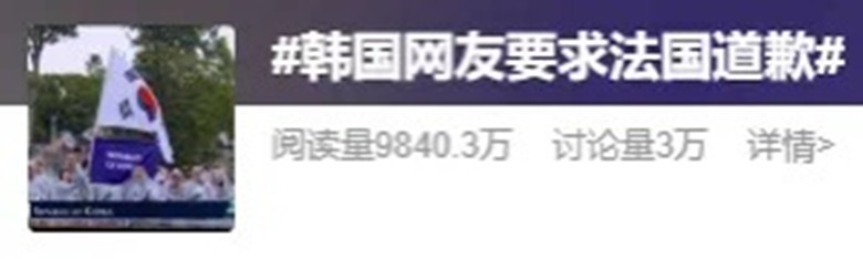 香港新聞網8月1日電 巴黎奧運會於7月26日開幕,至今才一周不到的時間,但在中國、在韓國,甚至在全世界的網絡上,目前關於韓國的話題卻是不斷地成為熱搜話題——“浪漫”的法國人在無意之中,一次又一次地犯錯,每次都讓韓國人抓狂不已……讓我們來看看究竟是怎麼一回事吧。