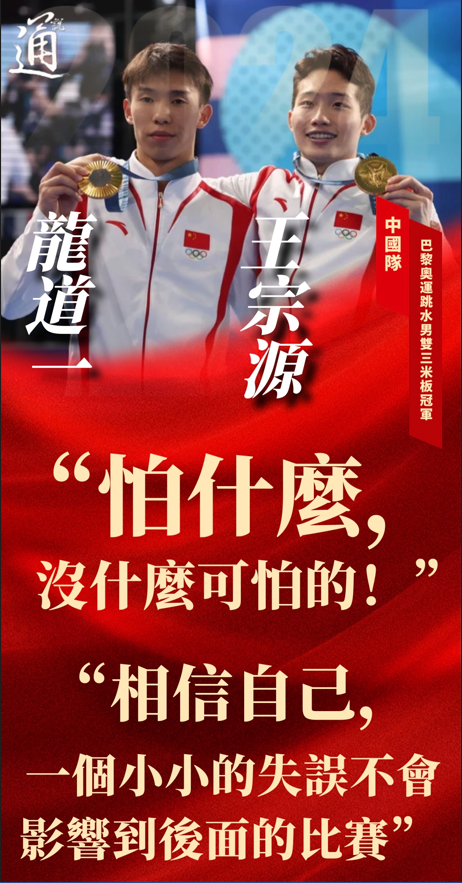 (巴黎奧運)冠軍語萃:天意翻身仗 自我懷疑燃進步香港中通社8月3日電 當地時間8月2日,巴黎奧運會第七個比賽日。中國隊在傳統強勢項目跳水和羽毛球中接連奪金;柔道賽場等亦有金牌誕生。談及奪冠之路,奧運健兒們吐露許多真摯的話語,讓人得以窺見他們榮譽背後的心路歷程。 2日,中國組合王宗源/龍道一在跳水男子雙人三米板決賽中,以2.07分險勝墨西哥組合奧斯馬爾/塞拉亞·埃爾南德斯,為中國跳水隊贏得巴黎奧運第四金。 王宗源以“驚心動魄”形容這場決賽,因為龍道一在第三跳和第四跳都出現了失誤,兩人在四跳後分數被墨西哥組合反超0.24分。好在他們及時穩住心態,第五跳後又超過墨西哥組合1.08分。 最終分數出來後,王宗源趴在隊友肩膀上落淚了。“這場比賽異常艱難,對我倆來說也是第一次,整場比賽都咬得很緊。我最後就沒忍住,就哭了一點點。”