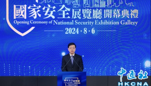 8月6日,香港特別行政區國家安全展覽廳開幕典禮在香港歷史博物館舉行。(香港中通社圖片) 香港特區行政長官李家超致辭表示,維護國家安全只有進行時,沒有完成時。特區政府會全面準確貫徹“一國兩制”方針,堅定不移維護國家主權、安全、發展利益。 中央政府駐港聯絡辦主任鄭雁雄致辭指出,歷經了由亂到治,今天的香港特區正在由治及興的光明大道上勇毅前行。越是這個時候,越不能淡忘國家安全。國安展覽廳的落成開放,必將進一步匯聚“國安家好”的共識。 中央政府駐香港特區維護國家安全公署署長董經緯致辭時表示,展覽廳作為常態化教育基地,具有標誌性的里程碑教育意義。維護國家安全有“一國”之責,但無“兩制”之分,應人人有責、人人盡責,國家安全要由香港人民共同完成。 外交部駐港特派員公署特派員崔建春致辭指出,外交部駐港公署將繼續以維護國家主權、安全、發展利益為使命,旗幟鮮明反干預,堅定不移護國安,全力支持香港發揮獨特地位和優勢,助力香港在融入國家大局中,實現更好更快發展。 當日記者進入展覽廳後,感到氣氛莊嚴且富有歷史感,有多項珍貴歷史文物和科學標本展出,包括嫦娥五號採集的月壤、香港國安法公佈實施當日在北京天安門廣場飄揚的國旗、中國人民銀行首次發行的人民幣1000元及500元鈔票樣本,以及雪龍2號、殲20戰鬥機、中國空間站、長征系列運載火箭等的模型。 展廳內設有互動屏幕和信息板,提供豐富的歷史背景和解釋性資訊,以及國安主題的兒童動畫。其中“祖國與香港”展區以紅色調和深色天花板為基底,營造出莊重肅穆的氛圍。按1:1比例複製的“開國大典”油畫極具震撼力,使觀眾能深切感受到歷史的厚重感。離開展廳時,訪客將見到“國安港安 國安家安”醒目的巨型標語,深刻領悟“國家安全、人人有責”的道理。 展覽廳將在8月7日正式對公眾免費開放。保安局局長鄧炳強預計一年會接待超過10萬人次的市民和遊客。(完) 【編輯:李冉】