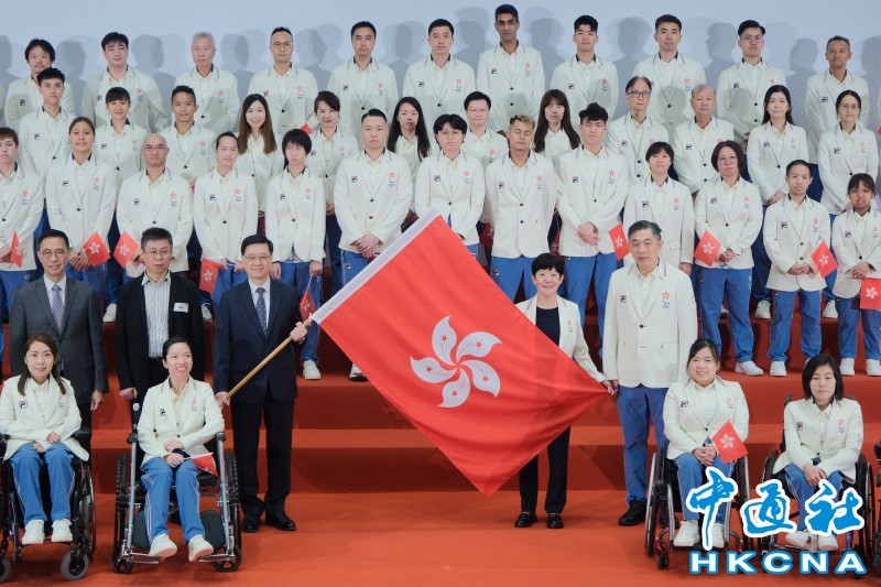 香港中通社圖片 香港自1972年第四屆殘奧會開始每屆派員參賽,至今累計奪得40金、39銀和52銅,合共131面獎牌。其中,港隊在上屆賽事得到兩銀、三銅的佳績。 香港特區行政長官李家超在授旗儀式上為即將出戰殘奧會的香港運動員打氣。他致辭指,殘奧會港隊運動員將以堅韌不屈的鬥志,衝破重重難關,在運動場上展現香港精神,全力拼搏,不會放棄,突破自我,又一次讓香港人引以為傲。